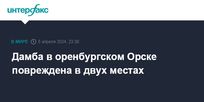 Москва. 5 апреля. INTERFAX.RU - Насыпная дамба в городе Орске Оренбургской области повреждена в двух местах, специалисты работают над ее восстановлением, сообщил глава города Василий Козупица.