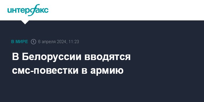 Москва. 6 апреля. INTERFAX.RU - СМС-повестки призыва в вооруженные силы вводятся в Белоруссии, явка в военкомат после получения рассылки на мобильные телефоны будет обязательной, соответствующий закон подписал президент страны Александр Лукашенко.