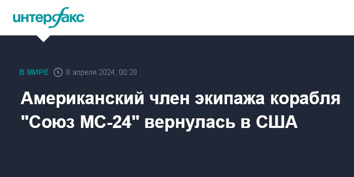 Американский член экипажа корабля "Союз МС-24" вернулась в США