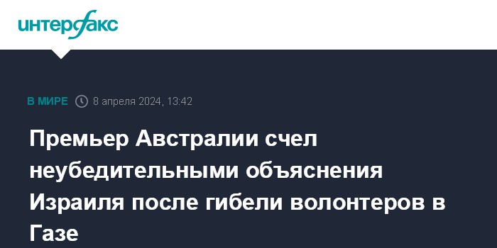 Премьер Австралии счел неубедительными объяснения Израиля после гибели волонтеров в Газе