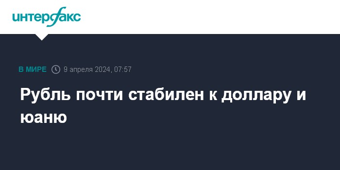 Москва. 9 апреля. INTERFAX.RU - Доллар США и юань не проявили ощутимой динамики на Московской бирже утром во вторник, рубль находится в боковом коридоре с учетом "вялой" динамики мировых рынков капитала.