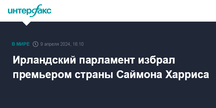Москва. 9 апреля. INTERFAX.RU - Члены Палаты представителей ирландского парламента проголосовали за то, чтобы Саймон Харрис стал новым премьер-министром страны, сообщает во вторник The Guardian.