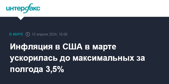 Инфляция в США в марте ускорилась до максимальных за полгода 3,5%
