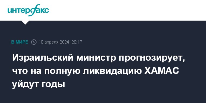 Израильский министр прогнозирует, что на полную ликвидацию ХАМАС уйдут годы