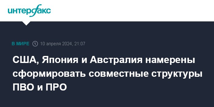 Москва. 10 апреля. INTERFAX.RU - Американский президент Джо Байден сообщил в среду, что США, Япония и Австралия намереваются вместе развивать противовоздушную и противоракетную оборону.
