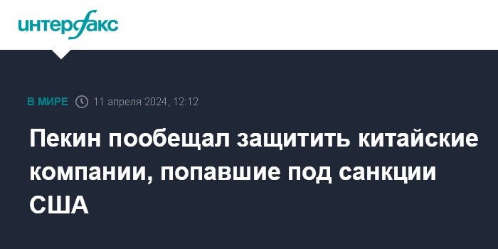 Пекин пообещал защитить китайские компании, попавшие под санкции США