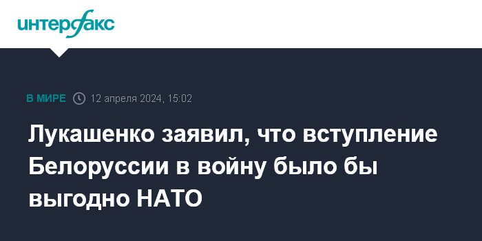 Лукашенко заявил, что вступление Белоруссии в войну было бы выгодно НАТО