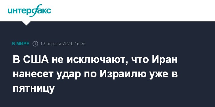 "Крупная атака Ирана на Израиль может произойти уже в пятницу, возможно, с применением более 100 беспилотников и десятков ракет для удара по военным целям на территории страны", - говорится в сообщении.