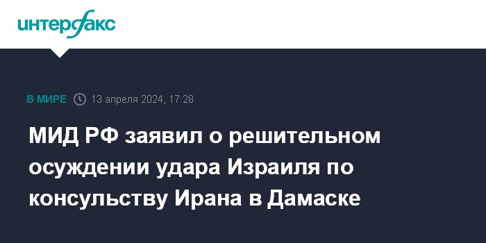 МИД РФ заявил о решительном осуждении удара Израиля по консульству Ирана в Дамаске
