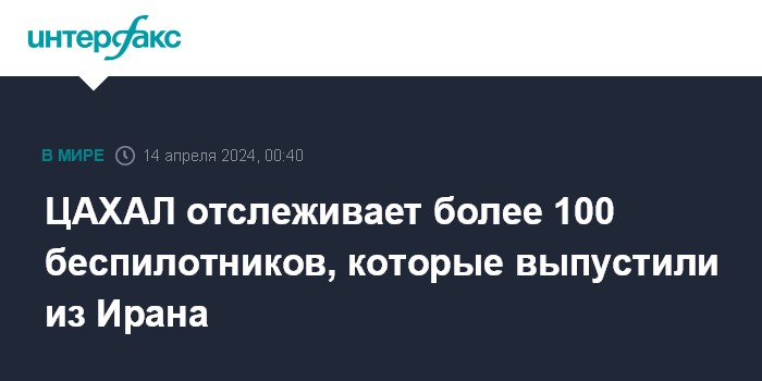 Москва. 14 апреля. INTERFAX.RU - Армия обороны Израиля (ЦАХАЛ) засекла и отслеживает более 100 беспилотников, запущенных по Израилю с территории Ирана, сообщает в воскресенье The Times of Israel.