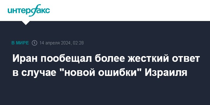 Иран пообещал более жесткий ответ в случае "новой ошибки" Израиля