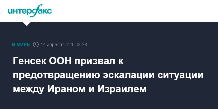 Генсек ООН призвал к предотвращению эскалации ситуации между Ираном и Израилем