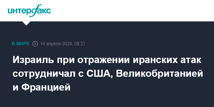 Израиль при отражении иранских атак сотрудничал с США, Великобританией и Францией