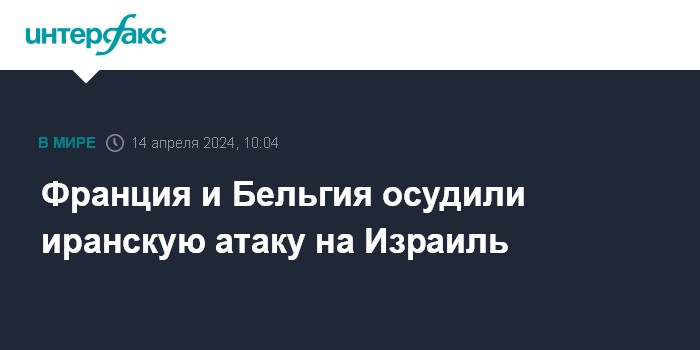 Москва. 14 апреля. INTERFAX.RU - Главы МИД Франции и Бельгии заявили в воскресенье об осуждении своими странами ударов Ирана по Израилю.