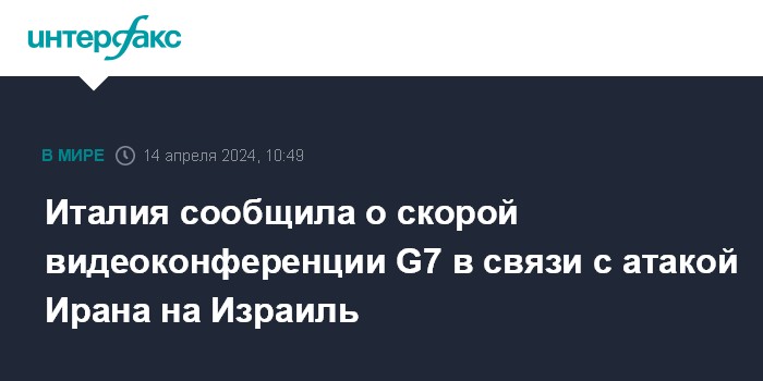 Москва. 14 апреля. INTERFAX.RU - Италия, которая сейчас председательствует в G7, организует в воскресенье видеоконференцию "большой семерки" в связи с ударом Ирана по Израилю, сообщают западные СМИ.