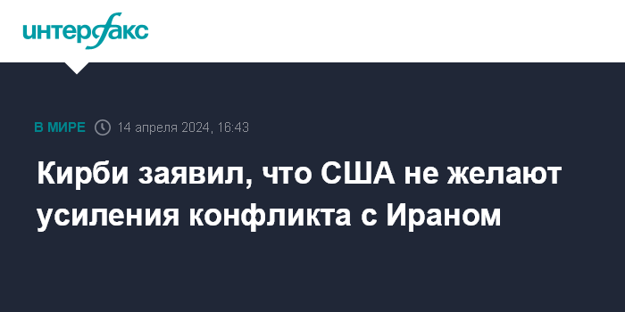 Москва. 14 апреля. INTERFAX.RU - Администрация США не хочет расширения конфликта с Ираном, заявил в воскресенье советник Белого дома Джон Кирби.