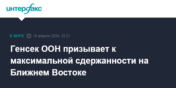 Москва. 14 апреля. INTERFAX.RU - Генсек ООН Антониу Гутерриш призвал проявлять максимальную сдержанность на Ближнем Востоке, чтобы избежать крупного конфликта.