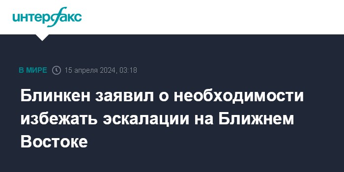 Блинкен заявил о необходимости избежать эскалации на Ближнем Востоке