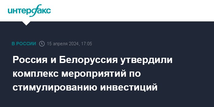 Россия и Белоруссия утвердили комплекс мероприятий по стимулированию инвестиций