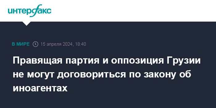 Москва. 15 апреля. INTERFAX.RU - Представители правящей партии Грузии "Грузинская мечта" и оппозиция не могут прийти к согласию по проекту закона "О прозрачности иностранного влияния", обсуждение которого идет в юридическом комитете парламента уже более восьми часов.
