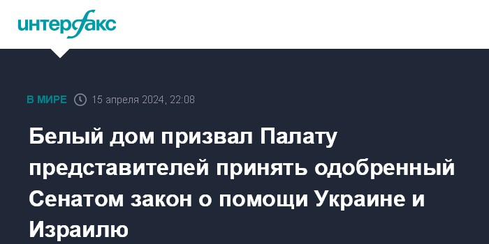 "Самый лучший и быстрый способ поддержать наших союзников и партнеров - это чтобы Палата представителей приняла именно двухпартиный законопроект о помощи, который ранее приняли в сенате", - сказал в понедельник советник Белого дома Джон Кирби журналистам на брифинге в Белом доме. Он отвечал на вопросы журналистов по поводу того, изменилась ли позиция Белого дома по этой теме после иранских ударов по Израилю.