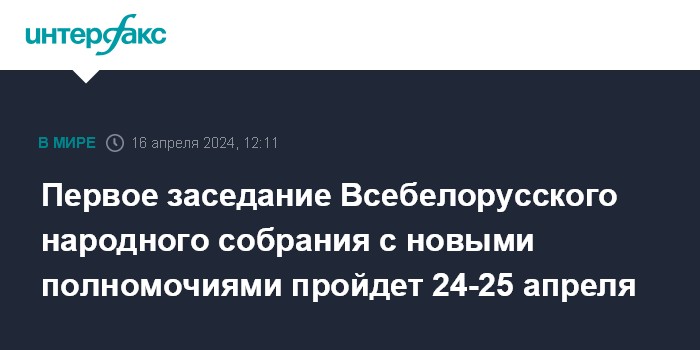 Первое заседание Всебелорусского народного собрания с новыми полномочиями пройдет 24-25 апреля