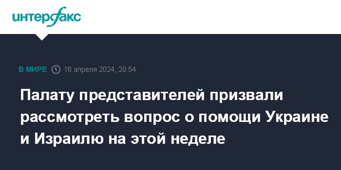 "Важно, чтобы Палата представителей продвинулась в этом вопросе на этой неделе, чтобы помочь нам получить помощь в сфере безопасности для Израиля, Украины и также для Индо-Тихоокеанского региона, - сказал он. - Что касается деталей предложений, то мы будем смотреть, что именно предложит спикер (Палаты представителей - ИФ)".