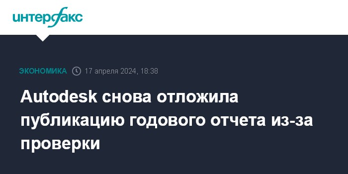 Москва. 17 апреля. INTERFAX.RU - Американский разработчик программного обеспечения Autodesk Inc. вновь откладывает публикацию годового отчета из-за внутренней проверки.