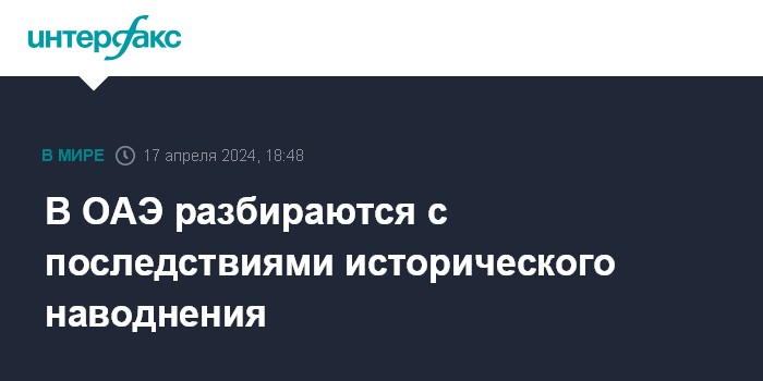 Москва. 17 апреля. INTERFAX.RU - В ОАЭ приступили к ликвидации последствий наводнения, которое привело к гибели одного человека, сообщают ближневосточные СМИ.