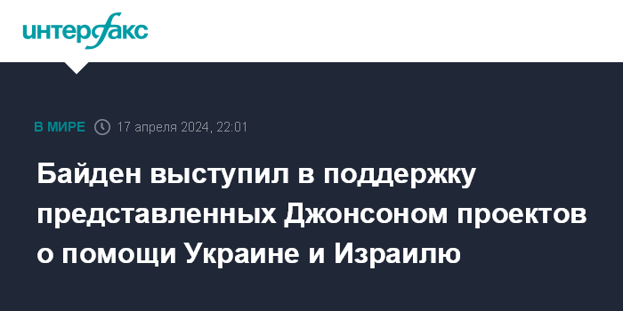 Байден выступил в поддержку представленных Джонсоном проектов о помощи Украине и Израилю