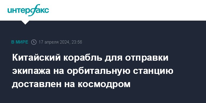 Китайский корабль для отправки экипажа на орбитальную станцию доставлен на космодром