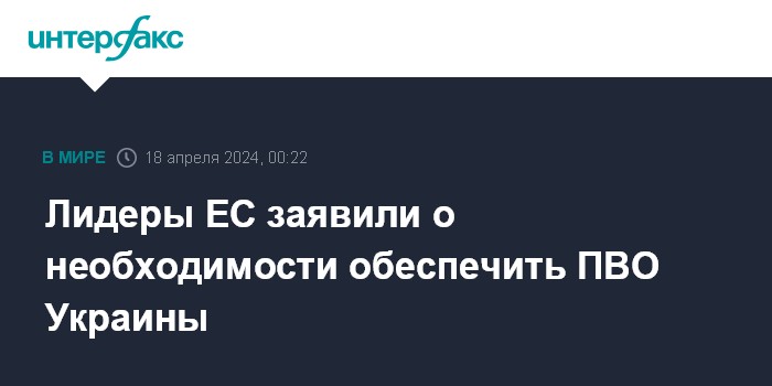 Москва. 18 апреля. INTERFAX.RU - Главы государств и правительств стран ЕС на саммите в Брюсселе высказались за обеспечение ПВО Украины и активизацию поставок Киеву боеприпасов и ракет.
