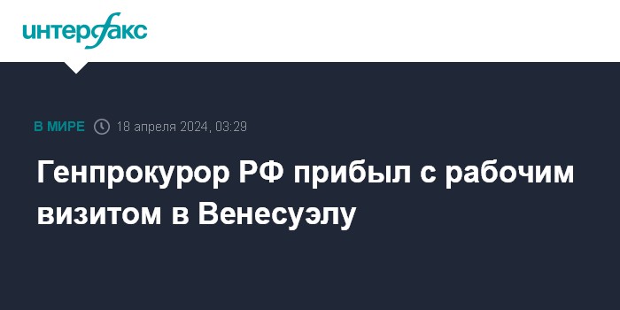 Москва. 18 апреля. INTERFAX.RU - Генеральный прокурор России Игорь Краснов прибыл с первым рабочим визитом в Венесуэлу, где проведет ряд встреч и подпишет соглашение о сотрудничестве.
