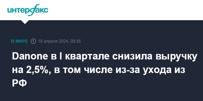 Danone в I квартале снизила выручку на 2,5%, в том числе из-за ухода из РФ