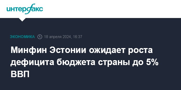 Минфин Эстонии ожидает роста дефицита бюджета страны до 5% ВВП