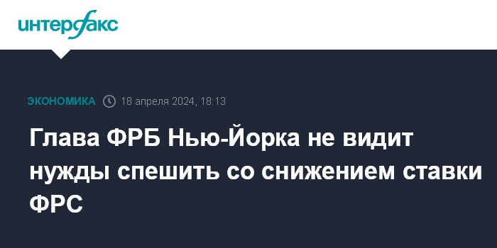Глава ФРБ Нью-Йорка не видит нужды спешить со снижением ставки ФРС