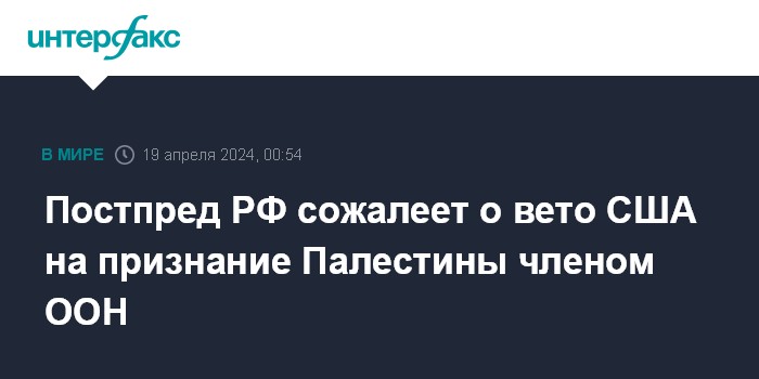 Постпред РФ сожалеет о вето США на признание Палестины членом ООН
