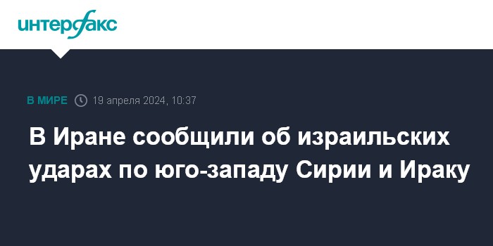 Москва. 19 апреля. INTERFAX.RU - Израиль провел серию авиаударов на юго-западе Сирии по целям в провинциях Эс-Сувайда и Даръа, а также в Ираке, сообщает иранский телеканал Press TV.