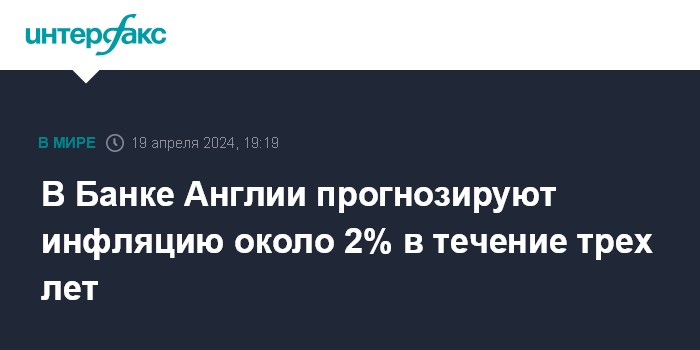 Москва. 19 апреля. INTERFAX.RU - Инфляция в Великобритании может остаться вблизи уровня в 2% в течение последующих трех лет, полагает заместитель главы Банка Англии Дейв Рамсден.