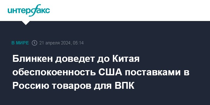 Блинкен доведет до Китая обеспокоенность США поставками в Россию товаров для ВПК