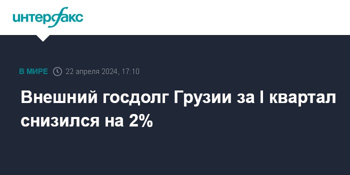 Внешний госдолг Грузии за I квартал снизился на 2%