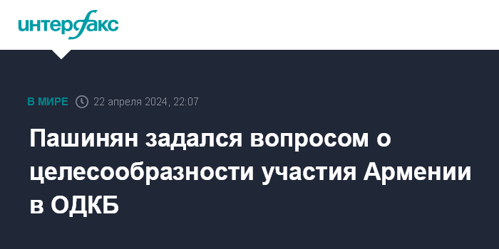 Москва. 22 апреля. INTERFAX.RU - Премьер-министр Армении Никол Пашинян заявил, что не имеет ответа на вопрос, почему республика продолжает оставаться членом Организации Договора о коллективной безопасности (ОДКБ).