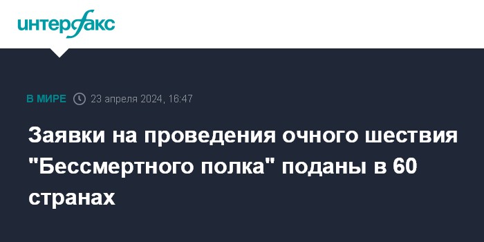Заявки на проведения очного шествия "Бессмертного полка" поданы в 60 странах