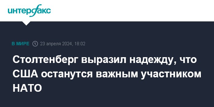 Столтенберг выразил надежду, что США останутся важным участником НАТО