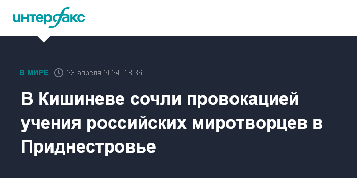 Москва. 23 апреля. INTERFAX.RU - Бюро по реинтеграции при правительстве Молдавии расценило учения российских миротворцев в Приднестровье как "провокационные действия", говорится в комментарии на сайте бюро.