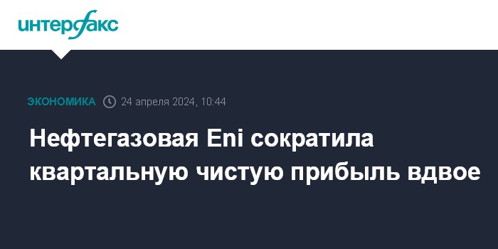Москва. 24 апреля. INTERFAX.RU - Итальянская нефтегазовая компания Eni SpA сократила чистую прибыль и выручку в первом квартале 2024 года, причем прибыль оказалась хуже прогнозов рынка, а выручка превысила ожидания.