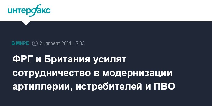 Москва. 24 апреля. INTERFAX.RU - Берлин и Лондон собираются развивать сотрудничество в оборонной сфере, включая военное производство и оперативную совместимость войск двух стран, говорится в совместном заявлении канцлера ФРГ Олафа Шольца и премьер-министра Великобритании Риши Сунака.