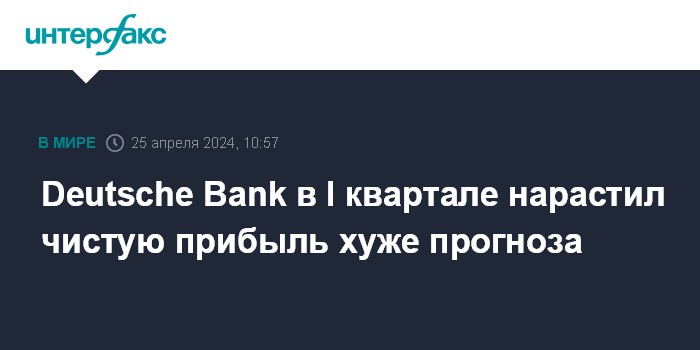 Москва. 25 апреля. INTERFAX.RU - Deutsche Bank AG, крупнейший банк Германии, увеличил выручку в первом квартале 2024 года на 1%, чистую прибыль, а также прибыль до и после налогообложения – на 10%.