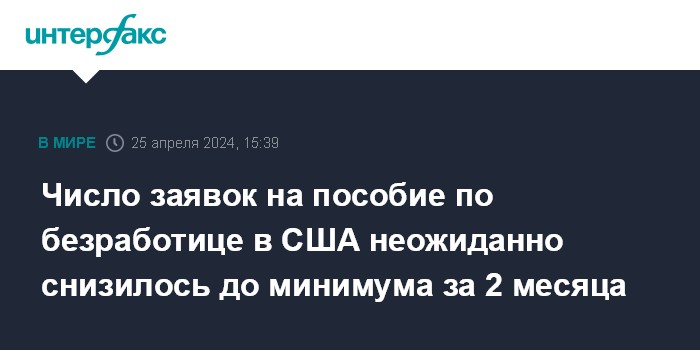 Число заявок на пособие по безработице в США неожиданно снизилось до минимума за 2 месяца