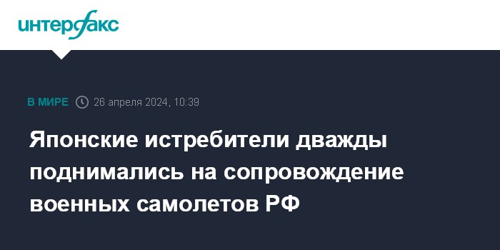 Москва. 26 апреля. INTERFAX.RU - Японские истребители поднимались на сопровождение российских военных самолетов над Японским морем, сообщил Объединенный комитет начальников штабов Сил самообороны.